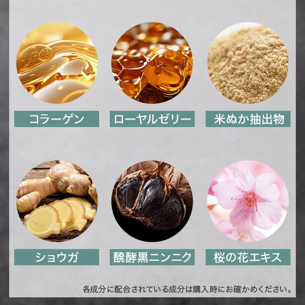 コラーゲンを助け、キレイを底上げする高純度・高分子のピュアエラスチン100Hを使用。吸収の良い低分子を使用したヒアルロン酸で美容をサポートします。